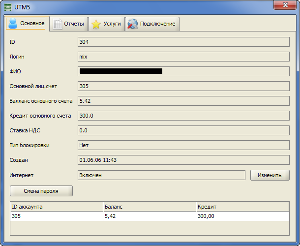 номер своего лицевого счёта, а также изменить свой статус интернета.