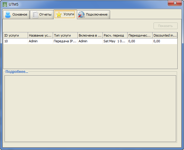 6. В окне "Услуги" вы сможете посмотреть список подключенных